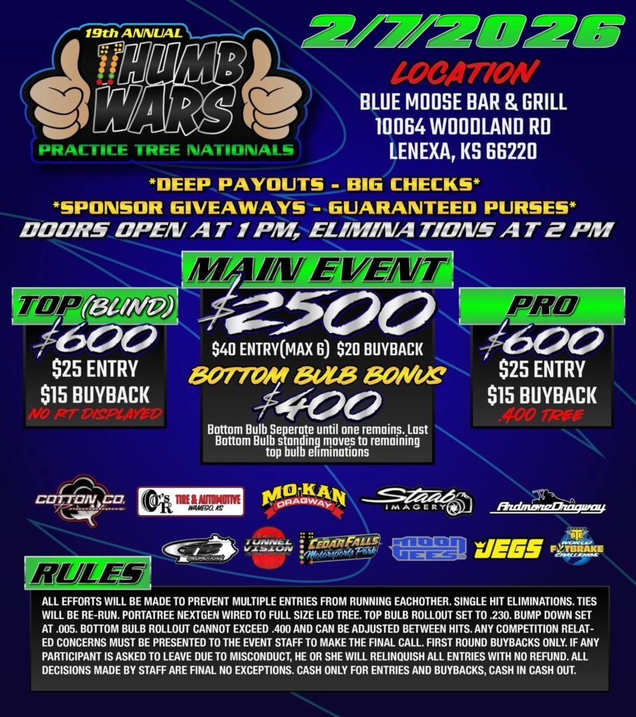 Whether you’re looking to sponsor a specific event or tap into our growing digital community, Mid America Dragway offers a unique platform to accelerate your business. Why Partner With Us?* Direct Exposure: Put your brand in front of thousands of fans on race day and 16k+ engaged followers online.* Brand Loyalty: Our racing community supports […]