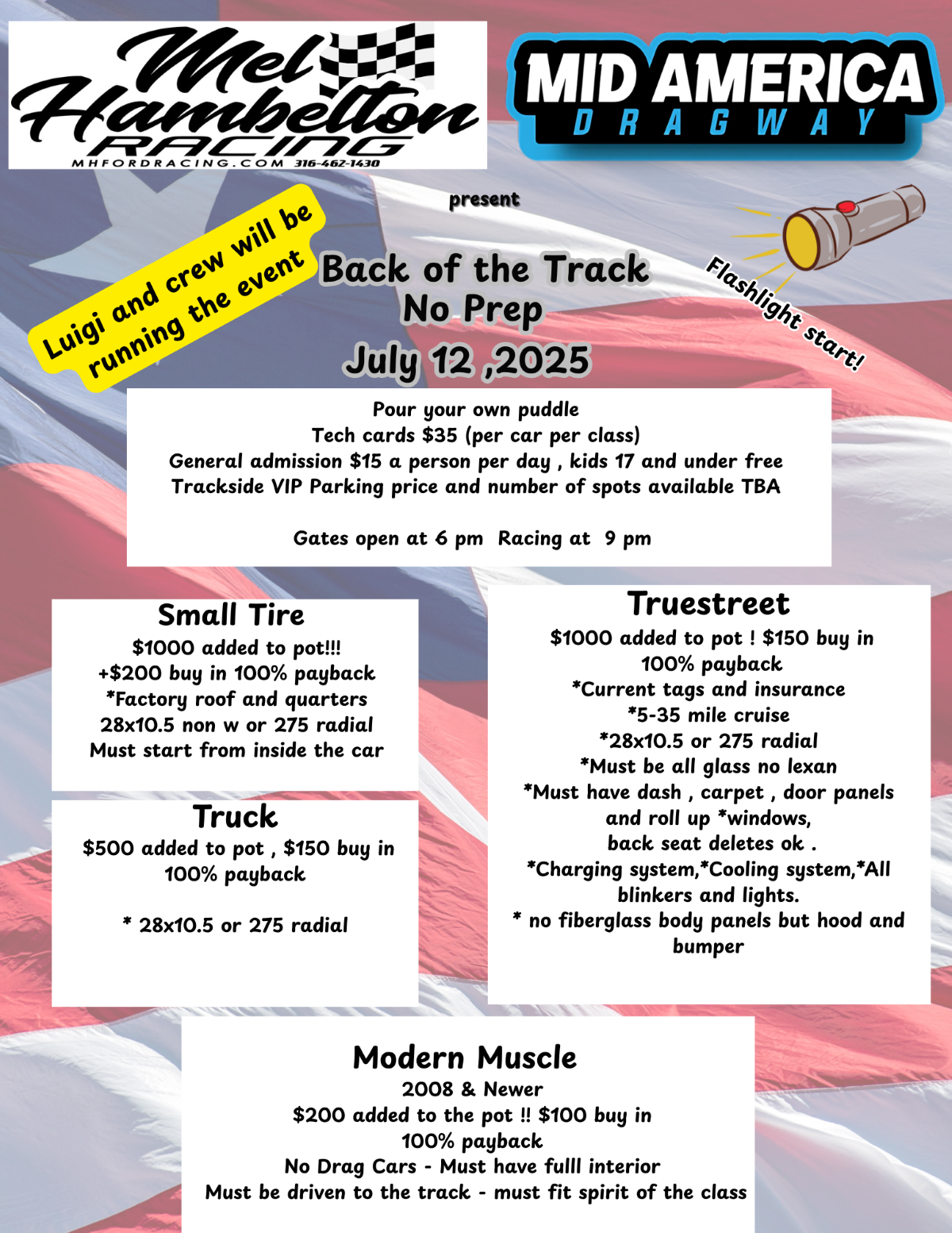 Racers gate opens at 3 pm